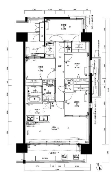 | バルコニー面積 | 12.7㎡ | バルコニー向き | |