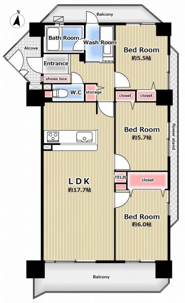 | 間取り | 3LDK | 間取り向き | (角部屋) |