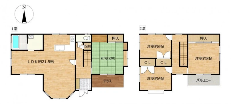 | 設備 | 都市ガス、電気、上水道、下水道、システムキッチン、給湯、シャワー、洗面台、フローリング、庭、駐車2台可 | ||